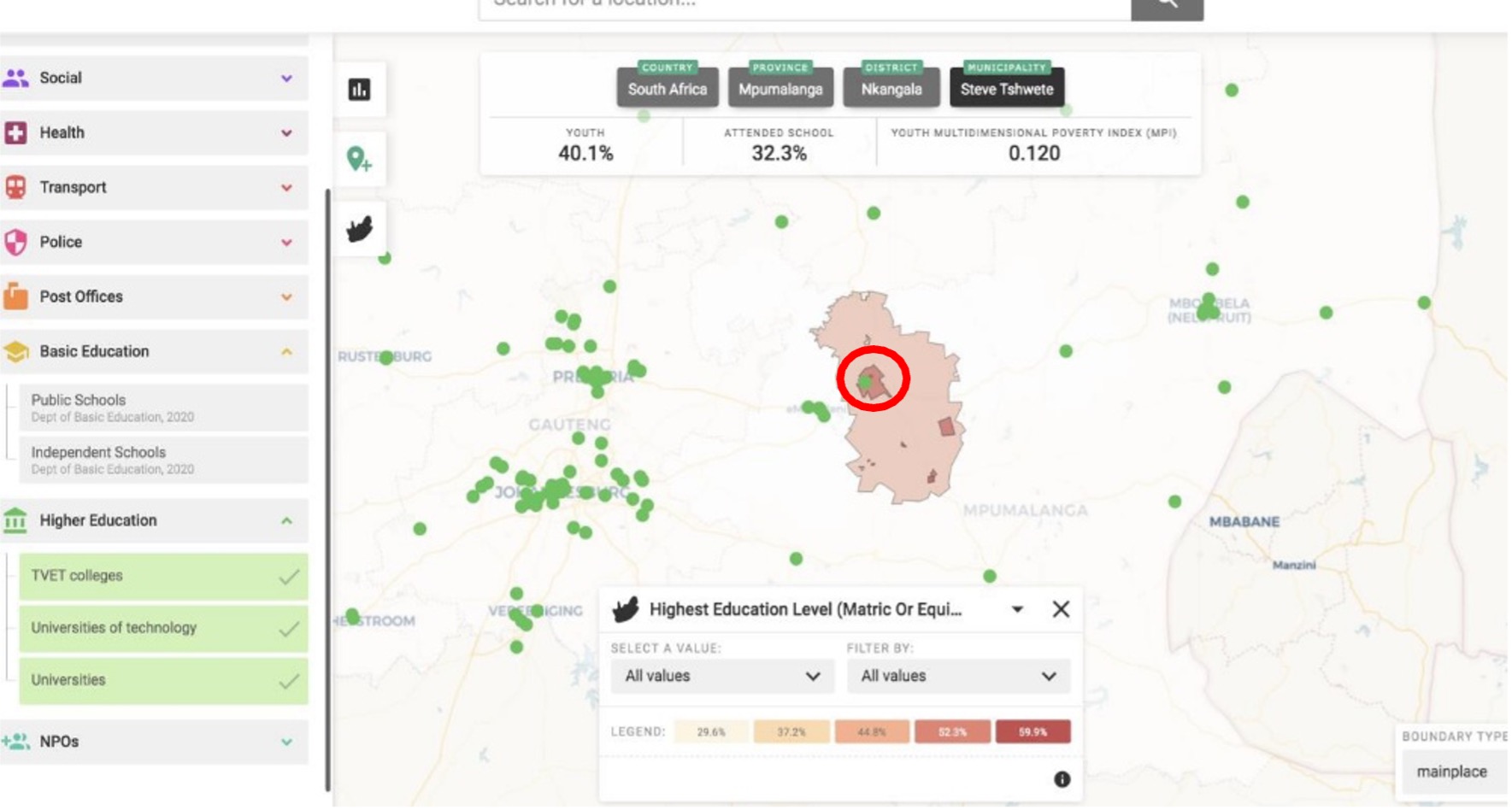 The Youth Explorer is a critical data tool within the Presidential Youth Employment Intervention (PYEI), providing accurate, location-specific insights on services for young people and helping identify ‘service deserts’. It supports government departments and Harambee, the lead of the National Pathway Management Network (NPMN), in connecting youth to nearby services through platforms like SAYouth.mobi and guiding policy and resource allocation. A recent TVET pilot within the NPMN showcased how Youth Explorer data can improve curriculum planning, work-integrated learning, and alignment with local labour markets by addressing gaps in employer engagement, labour market insights, and job readiness support. By offering interactive, localised dashboards and labour market maps, the Youth Explorer can empower TVET colleges to make strategic, data-informed decisions and build stronger partnerships with employers and other stakeholders.